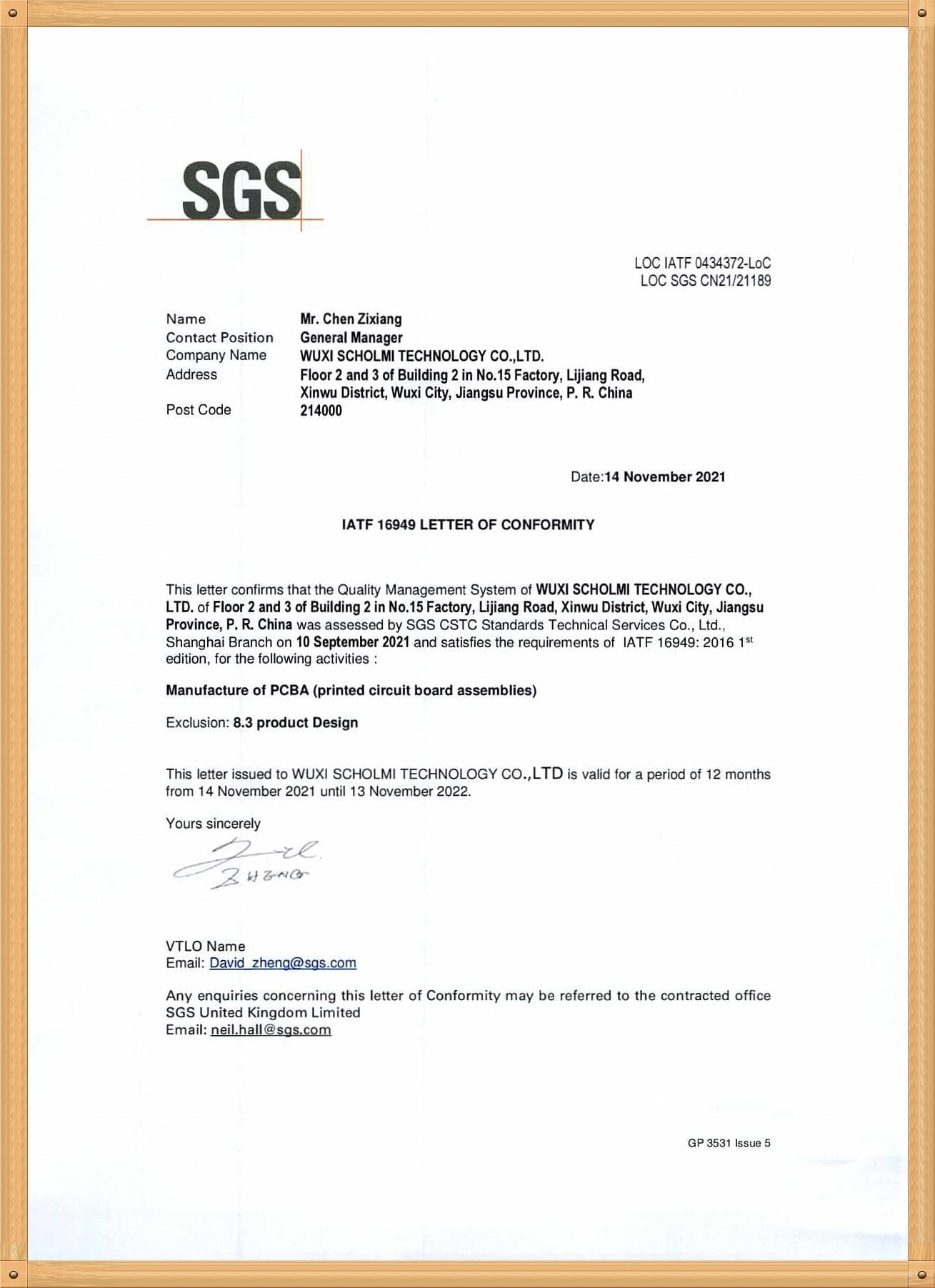 The company has obtained ISO9001 and ISO14001 quality management system certification and passed IATF16949 quality management system on-site audit in September 2021. (the certification to be issued)
