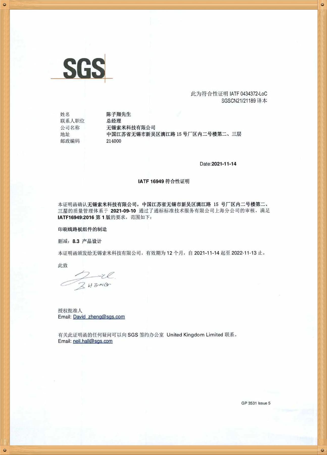 公司已通過ISO9001以及ISO14001管理體系認證,并于2021年9月通過IATF16949體系現(xiàn)場審核(證書待發(fā)放)。
